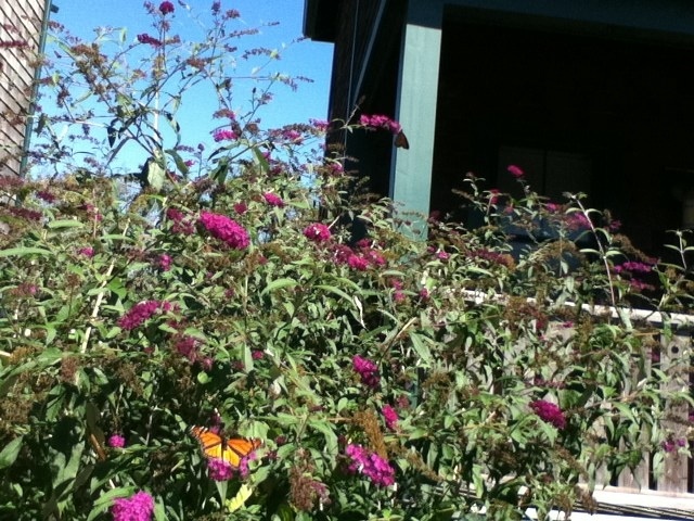 I took a walk and a neighbor pointed out flocks of butterflies on buddleia.
