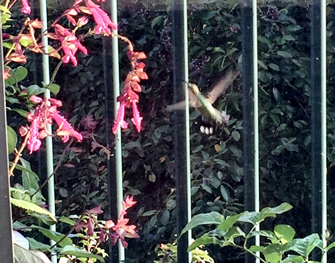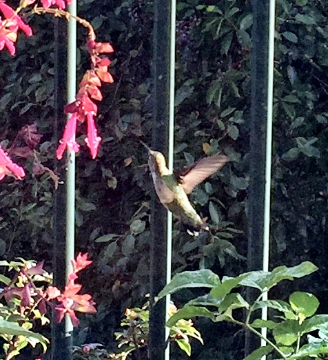 Mostly, I looked out my window. In February, I’d planned to be in Paris with a group. Instead, I lingered at my balcony window, and watched three successive nestings of a pair of industrious mourning doves. I watched the hummingbirds run riot over a pot of Wendy’s Wish salvia planted with Love and Kisses. I read an awful lot and then I began to watch an awful lot of tv. I logged seven hours one winter night with Scandinavian drama lightened by Danish seaside comedy. I forced myself reluctantly to venture outside and snap a picture of something other than my balcony–which in reality is several inches deep of metal , only a few steps away from an old-fashioned fire escape.