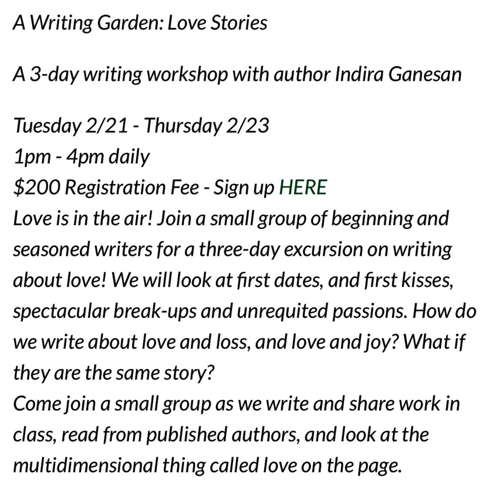 A Writing Garden: Love Stories Leave a reply Excited to bring this class to Wellfleet Preservation Hall February 21-23, 1-4 pm Sign Up Sign up SIGN UP HERE Share this:TweetMore Click to email a link to a friend (Opens in new window) Email Click to share on Reddit (Opens in new window) Reddit Share on TumblrLike Loading... Related