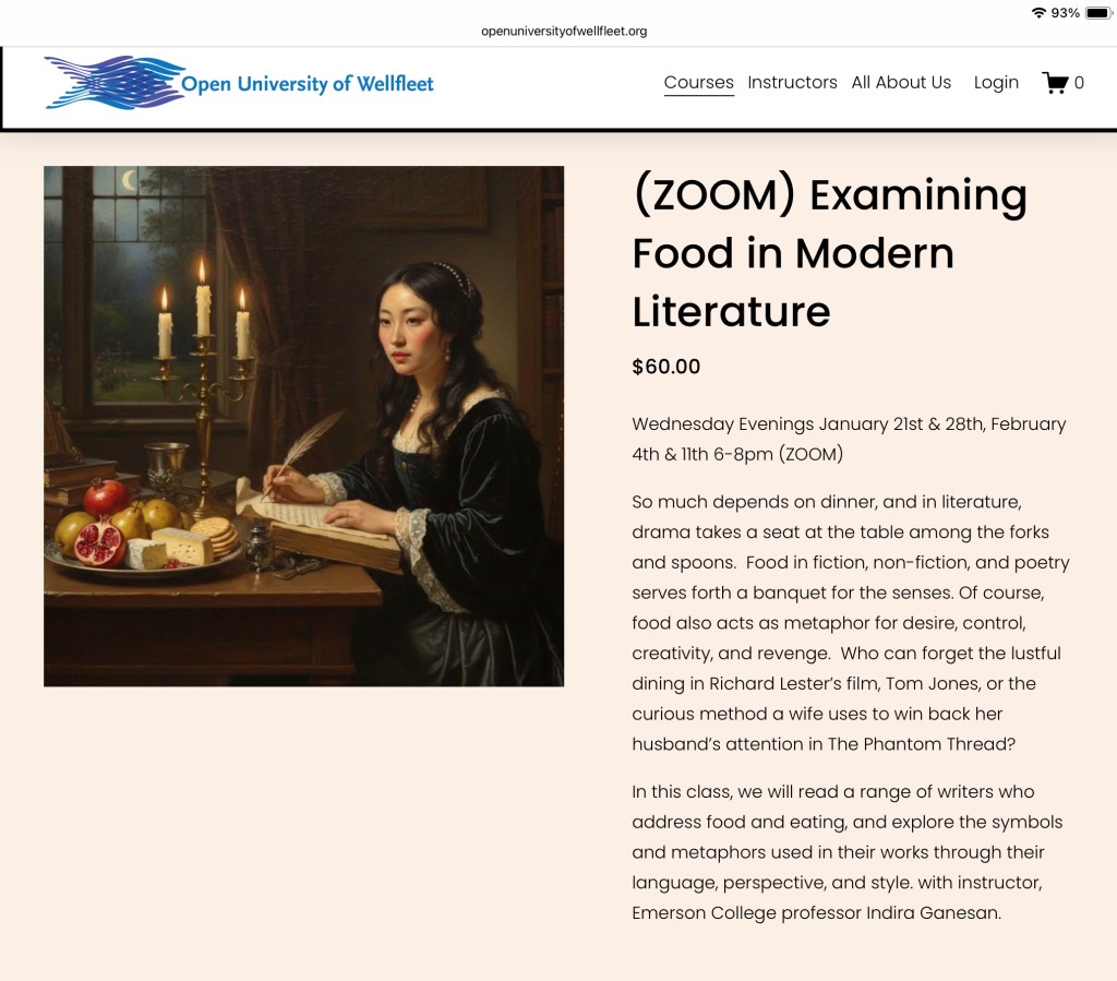 Open Uni Wellfleet: Food & Literature Jan 21 Leave a reply I am teaching a short weekly class for four weeks on Zoom, Share this:TweetMore Click to email a link to a friend (Opens in new window) Email Click to share on Reddit (Opens in new window) Reddit Share on TumblrLike Loading... Related