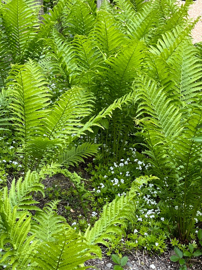 In the back garden, the ferns have returned, but the hosts is possibly getting eaten by deer. I saw a beautiful doe standing by the highway, greatly frightened as I passed by with my car a few days ago, before I became sick. It is welcome to my hostas, and I hope it survives, or moves on from my soon to be crowded summer town. I am planting more primroses, and popped in small starts of English daisies, and coleus.