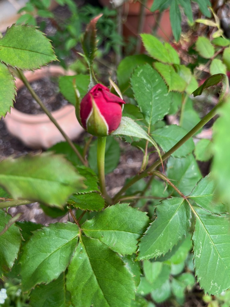 What is left of the roses is a stalwart Munstead, and a recovering Princess Alexandra of Kent, a steadfast Olivia Rose, a tiny, ankle-height Gertrude Jekyll, and the rescue red. The carpet rose survived, a monster plant that used to live in a quart bucket I brought home from a plant sale, but it is riddled with such black spot I should cut the whole thing down before it kills the Munstead. Last year, I moved the bush whose name I have forgotten— let’s call her Kate— and she has grown splendidly. Ah, remembered— it’s a spirea!