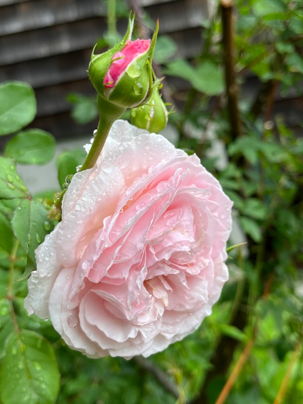 The foxglove is about to bloom. Stalwarts in the garden since I began it more than a decade ago, they never fail to impress me with their startle of color and generosity to the bees. Different strains have come and gone, for nothing ever stays the same in this coastal garden. But I am bidding a sad farewell to the James Galway rose. I got it one impulsive Autumn, maybe in 2012 or 2013, thrilled to score a David Auston on discount, and planted it as a new shrub rose. It grew and grew, becoming an eight-foot climber or maybe even more, with a profusion of heavy petal led fragrant pink roses each year throughout the season. Because I never properly trellised it, the wind would hack off it arms brutally, but it always recovered.