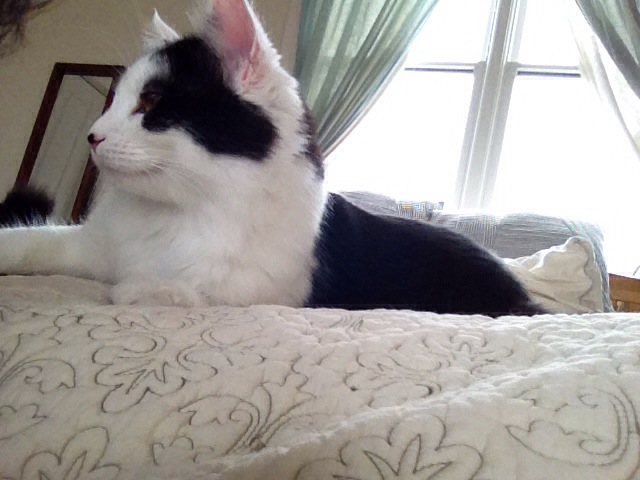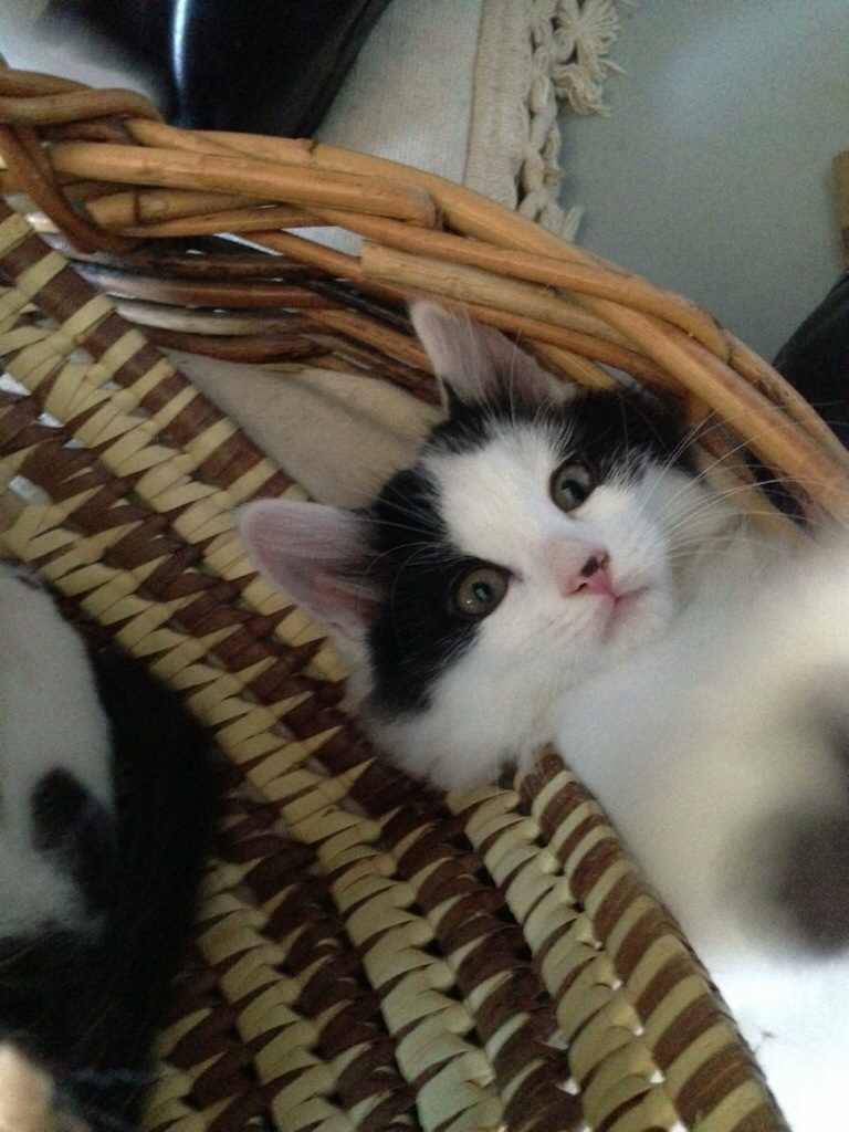 So, my cats. As many of you know, I fostered a family of four kittens and their mom for a few months last fall. They lived at first in my separate studio while making sure they were not infected with ringworm( they weren’t) before moving into my home. And move in, they did. Scrambling onto the computer, checking out the windows, the sofas, claiming spots, developing personalities. One liked to sleep on the upside down lap desk propped against my table; another slept with her sister head to foot. One liked to hide in boxes, and their mom sought refuge in spaces near the ceiling, atop the kitchen cabinets, or the transom of the window. They wriggled, purred, fought and cuddled their way into my heart. As they were adopted, my heart would give out a little. My sweet allergic niece decided she liked Izzy’s photo the best, and so I kept Izzy, and her mom.